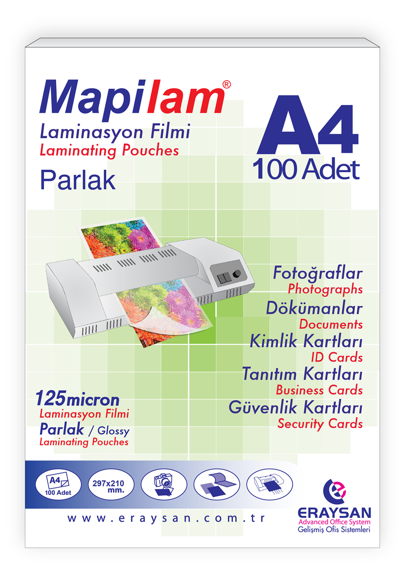 Mapilam 125 Mic. A4 Parlak Laminasyon Filmi – 100’lü Paket